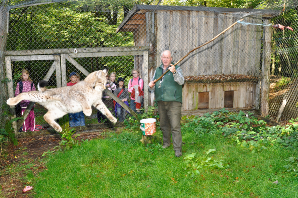 Den Empfangsposten am Anfang des Wildparks haben Haustiere und Ziergeflügel. Ein absolutes Highlight ist der stolze Pfau, der nicht selten seine farbenprächtigen Schmuckfedern zur Schau stellt.
